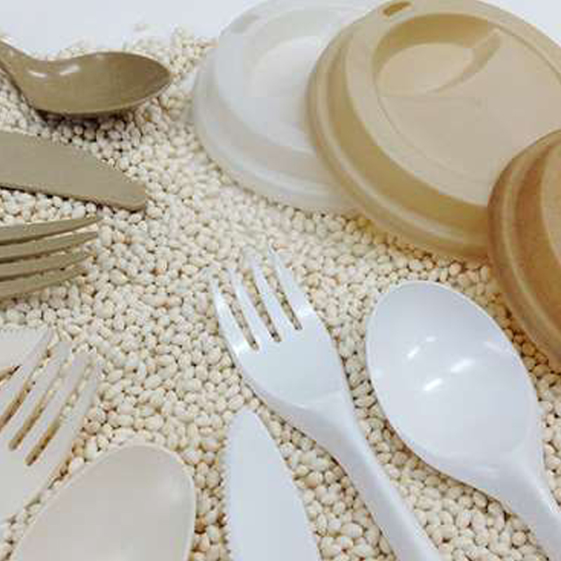 Pallets and Granules of compound are used to make utensils, plates, cup linings, carpeting and other Dr.Bio Products.